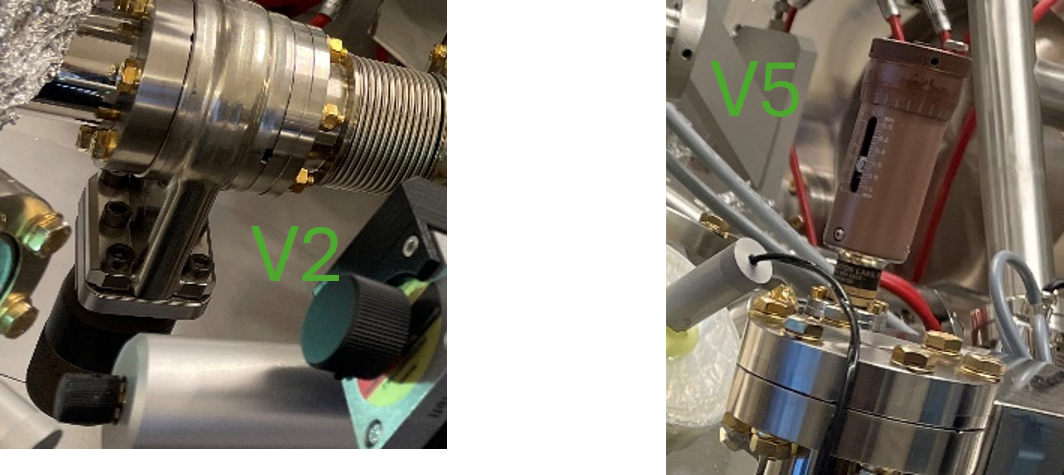 Release the gas in liquid N2 tank (valve 1) to air and wait until the gas release becomes slow and calm (e.g. pressure < 0.02 bar after 5 - 10 min).